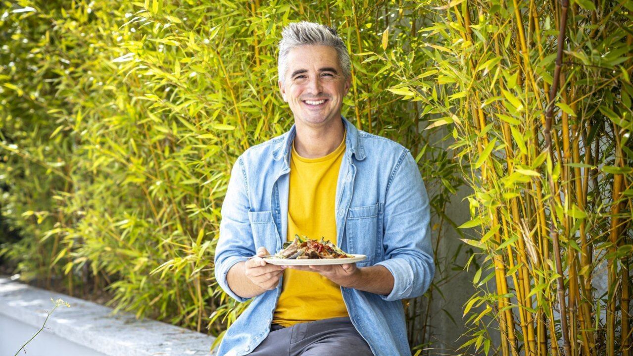 טרי מהגינה עם סיימון טוהיי 3 - פרק 5 סיימון מכין חגיגה של טעמים עם מתכונים מיוחדים של אורז קמבודי מטוגן, פנקייקים מלוחים מקמח חומוס וסלט קיצי ומרענן של תותים, שקדים מעושנים ופטה. ש.ח.