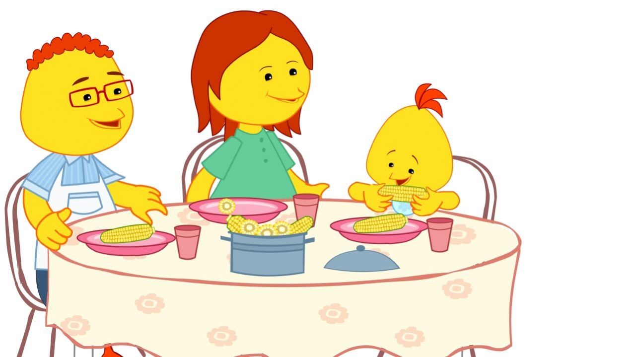 שיר עם לולי זמן הארוחה הגיע ולולי אוכל בהנאה עם ההורים וחבריו